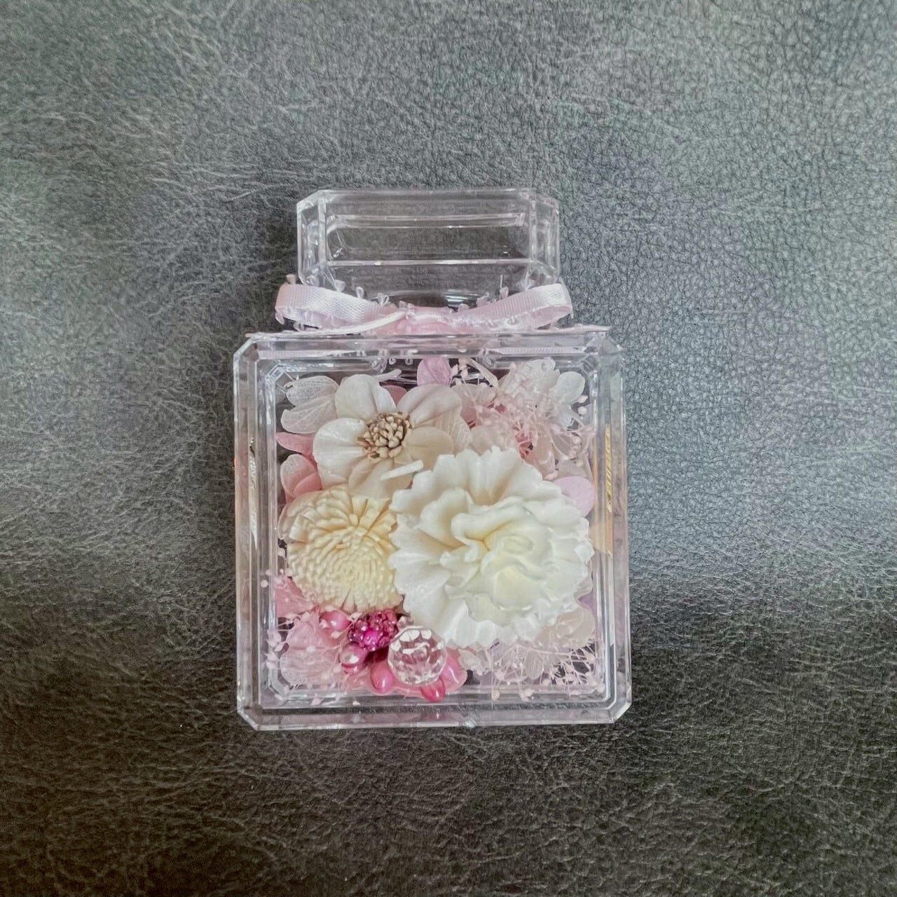 一枚一枚、職人の手で丁寧に仕立てられた花は、陶器のような繊細さと、植物由来のやさしい質感を併せ持ちます。透明感のあるケースに収めることで、埃を防ぎながら、美しさを長く楽しめる仕様に仕上げました。