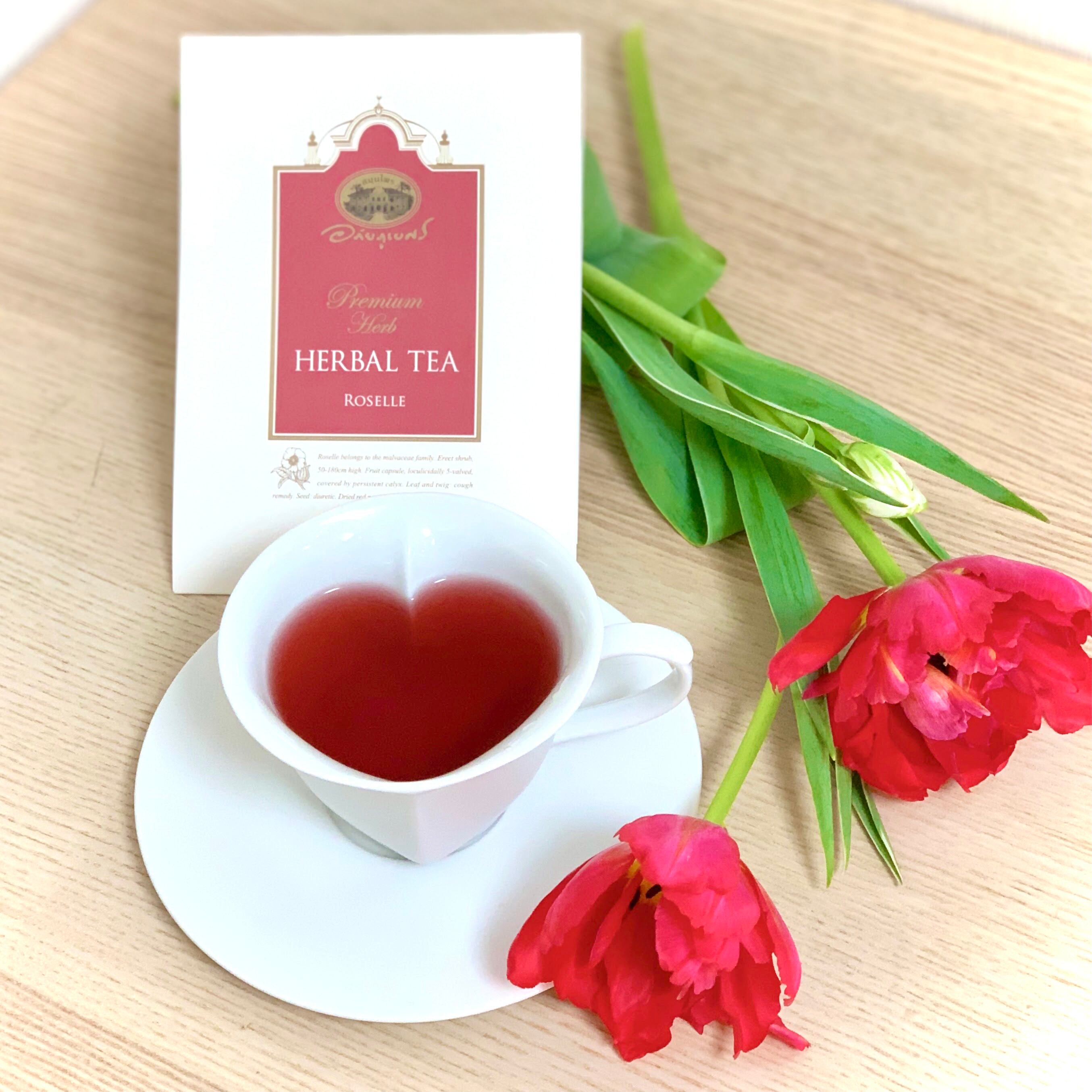 鮮やかなルビーレッドの色合いと、やさしい酸味が特徴のハーブティーです。